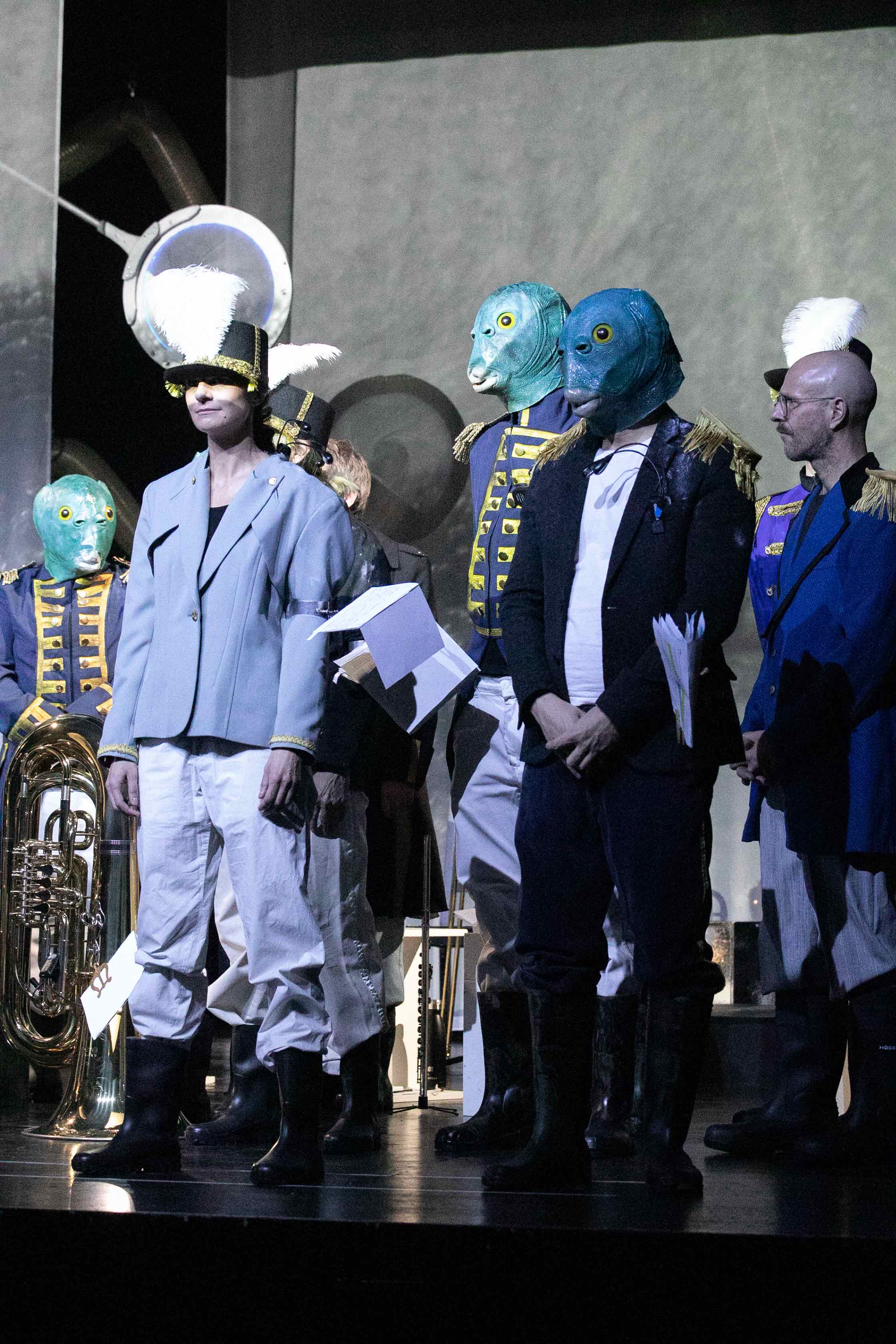 In seiner neuen Musiktheaterproduktion „Die Jeinsager“ fragen mehrblick&ton nach Mechanismen von Entscheidungen und Opferbereitschaft in Zeiten einer „großen Krankheit“. Folie dafür ist die Schuloper „Der Jasager“ von Brecht/Weill, in der der „große Brauch“ einer reisenden Gesellschaft thematisiert wird, wonach ein krankes Mitglied den Berg hinab gestürzt werden muss, damit die nicht infizierte Gesellschaft unbesorgt weiterreisen kann. Ein Junge wird krank und stimmt seinem Tod zu, die Gesellschaft feiert seine Opferbereitschaft.